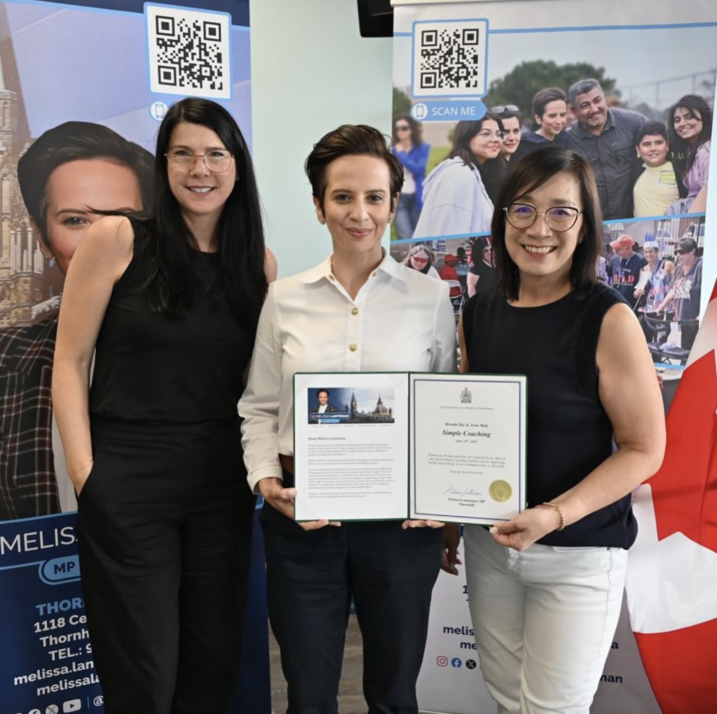 Thank you, Brenda and Jenn, for stopping by my office to chat about your business - Simple Coaching - and how you’re supporting health and wellness in our community here in Thornhill. 💪